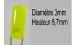 20 LED cylindrique Rouge boîtier jaune diffusant 3mm max 150mcd
